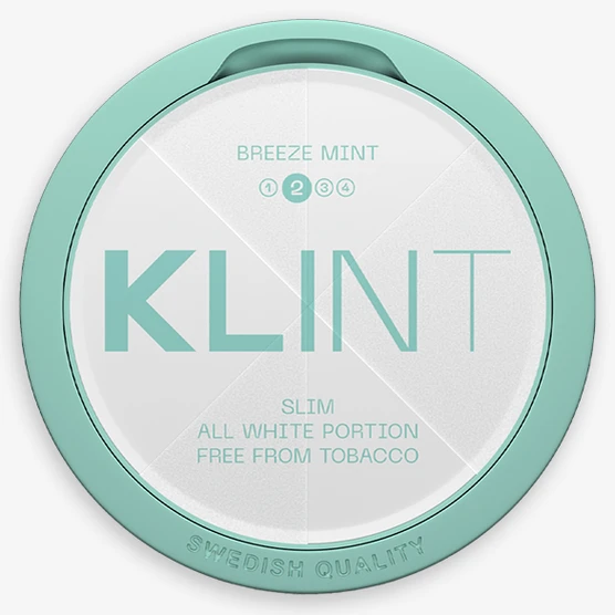 Klint Breeze Mint Slim has a fresh taste of mint with an extra power of peppermint. Comes in slim and normal strength portions. Buy Tobacco Free KLINT Breeze Mint Snus at Swedish Snus 4 Sale!