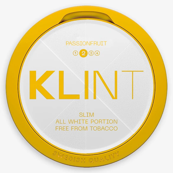 Klint Passionfruit provides both a sweet and healthy taste experience. The flavor comes from passion fruit, as well as from other exotic fruits and is delivered in slim white all white snus, filled with flavor. Buy Tobacco Free KLINT Passionfruit Snus at Swedish Snus 4 Sale!